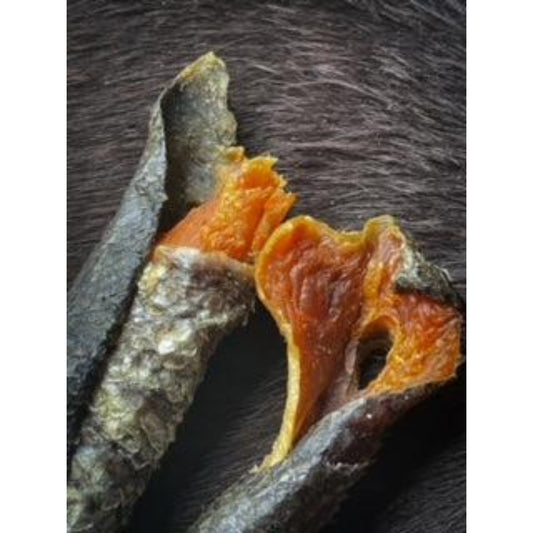 Zalmhuid met vlees